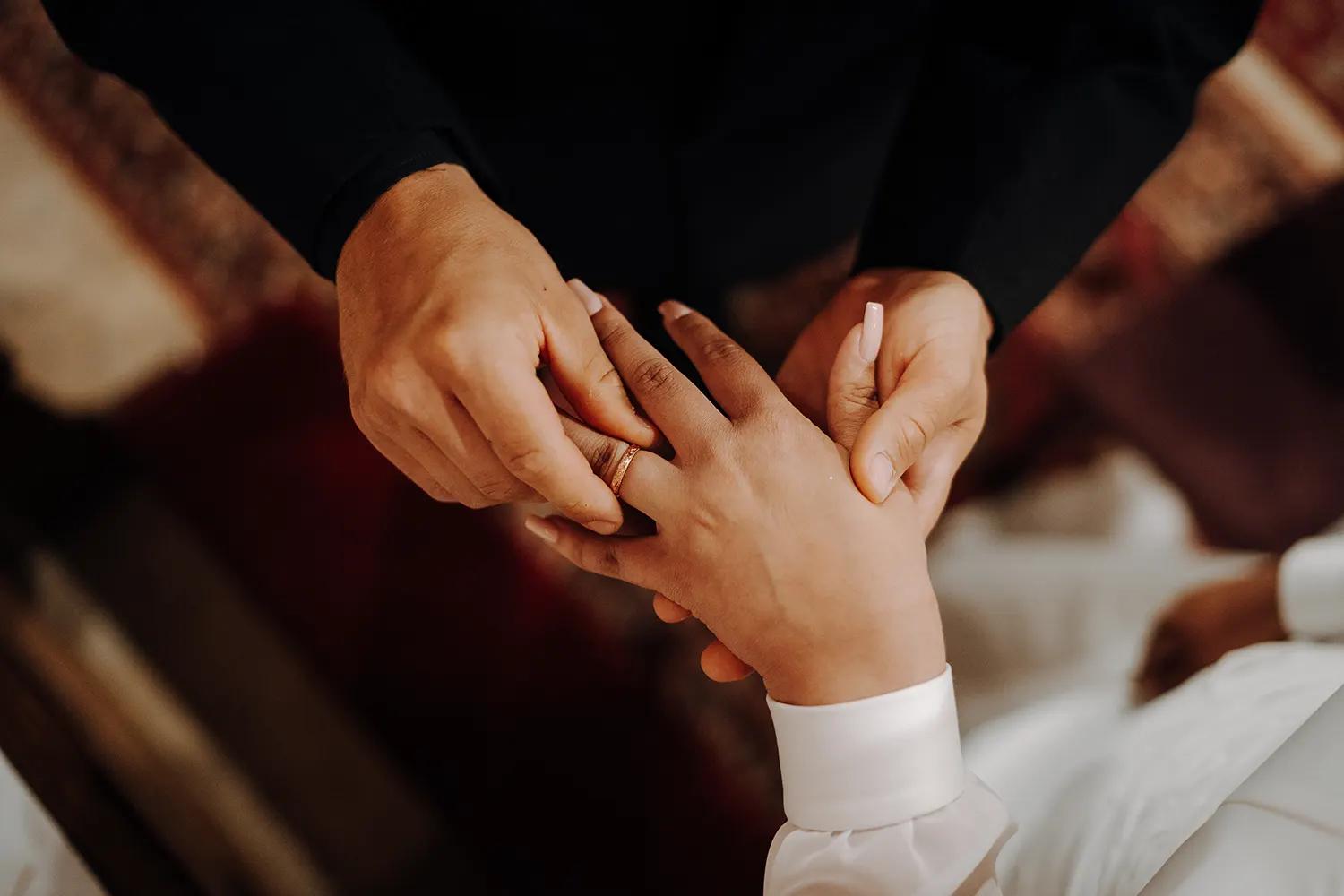 A templomi szertartás fotózása egyedülálló kihívás, hiszen itt a fények, a mozgástér és a hangulat teljesen más, mint egy szabadtéri esküvőnél. A templomok sajátos légköre, a gyertyafényes oltár, a visszhangzó énekek és az áhítat teljesen különleges vizuális élményt nyújtanak. A feladatom fotósként nem az, hogy beavatkozzak, hanem hogy láthatatlanul jelen legyek, és megragadjam azokat a részleteket, amelyeket más talán észre sem vesz.